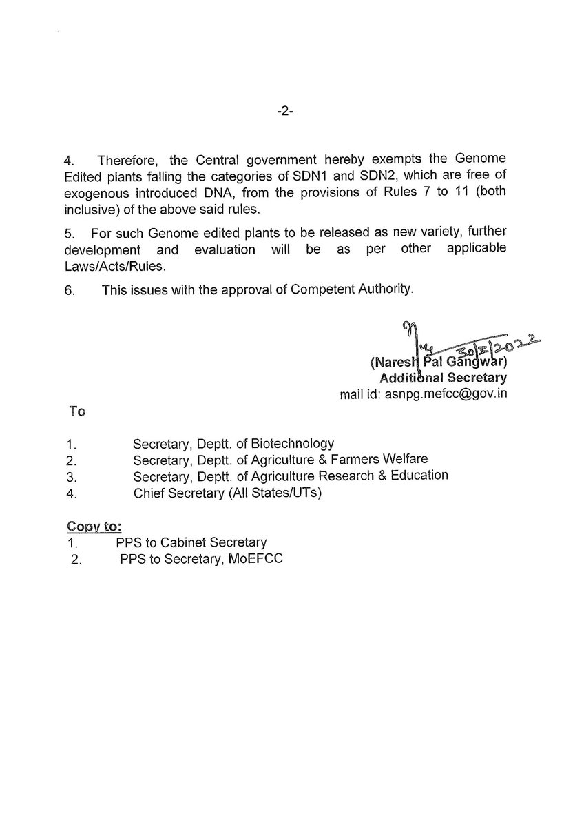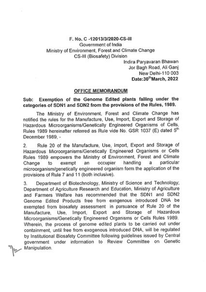 India wakes up to the benefits of gene editing in agriculture! Issues a sensible order exempting most gene edited crops from GMO regulation. Thanks