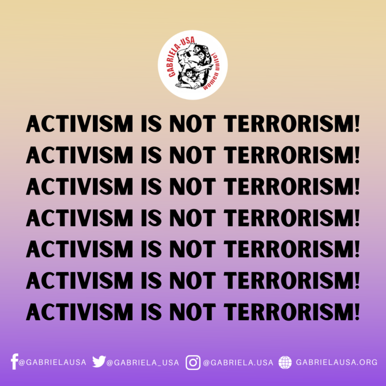 GABRIELA USA denounces the terror-tagging and doxxing of their national leaders by the government of the Philippines! Read the statement below. #ActivismIsNotTerrorism #DEFENDWOMEN #DEFENDGABRIELA #JunkTerrorLaw #OUSTDUTERTENOW http://gabrielausa.org/2020/09/13/gabriela-usa-denounce-terror-tagging-of-their-national-leaders-by-duterte-government/ …