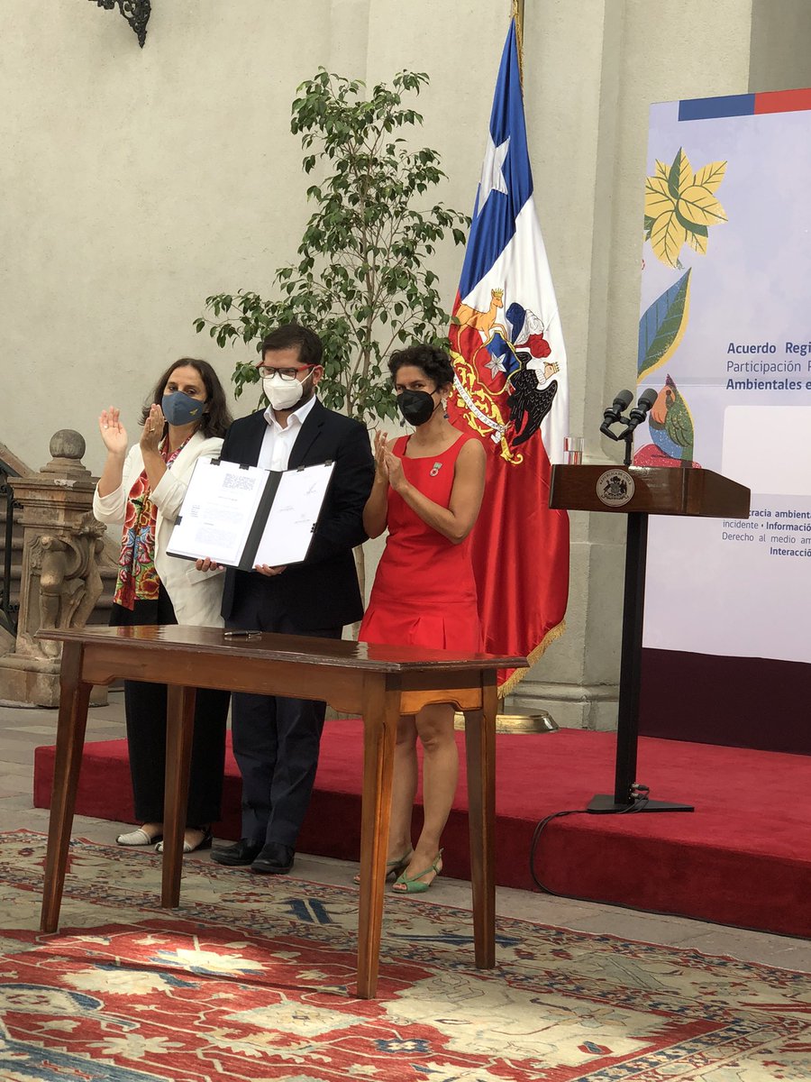 @gabrielboric y ministras@UrrejolaRREE y@Maisa_Rojas firman#AcuerdoDeEscazu Desde@MinjuDDHH apoyaremos trabajo normas para proteger derechos de defensor@s ambientales