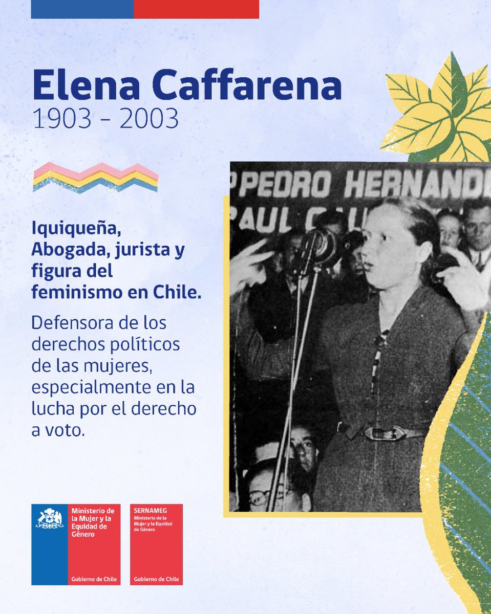 Elena Caffarena abrió un camino hacia el reconocimiento de los derechos de las mujeres, defendió los DD.HH y la democracia. Hoy reconocemos su legado, agradecemos su lucha y tomamos la estafeta para seguir trabajando con más fuerza por la equidad de género y la no discriminación.pic.twitter.com/wGxV17YxcB