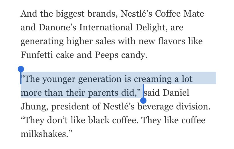 @WSJ’s story on young people & coffee creamer has been updated/paraphrased online and in print! https://www.wsj.com/articles/rich-sales-boost-coffee-creamers-11580737944 …pic.twitter.com/k9Qb3HlCrm