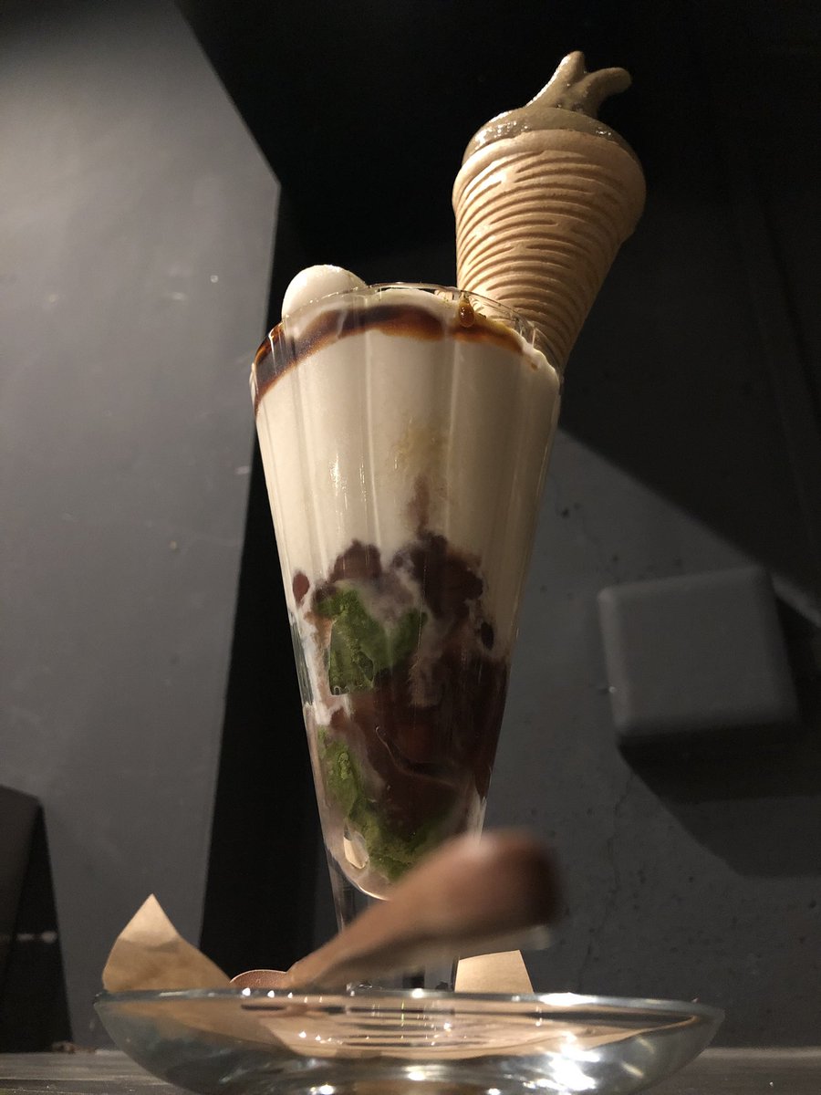 #CAFECONCESSION】#ほうじ茶の和パフェ ソフトクリームがぶっ刺さってます 食べ物で遊ぶなんて…いや、これは目で楽しめるスイーツ ほうじ茶ソフトが美味い 白玉、あずき、栗、わらび餅と味覚を刺激しまくりです#愛知県#豊田市#カフェコンセッションpic.twitter.com/B0rNspvHo6