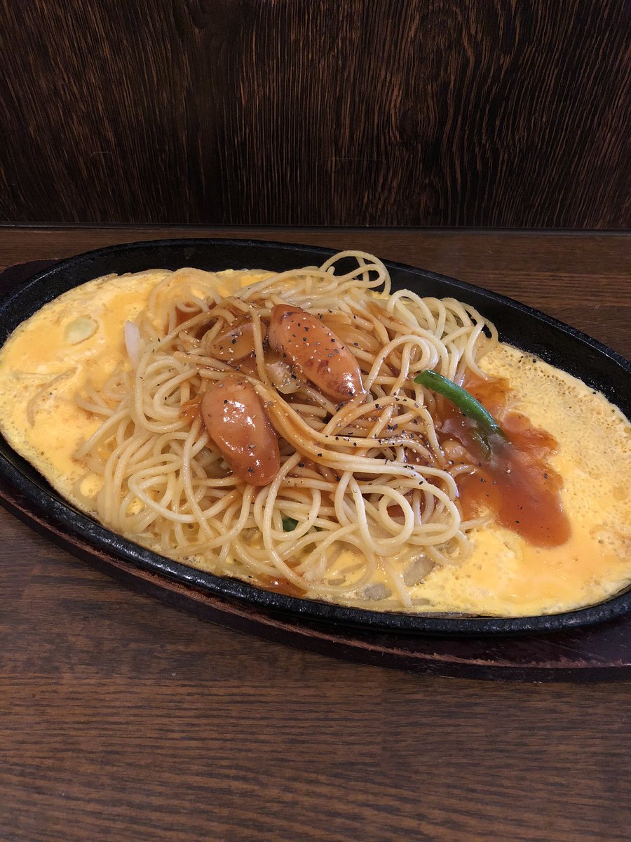 #CrystalRivage】#鉄板あんかけスパゲッティ ランチ案内の看板が気になった あんかけは鉄板に向かない気がするけどどうなんだろう たまごが敷いてあるのであんかけはトロッとしたまま 売り切れランチも発生する人気のカフェ#名古屋#池下#クリスタルリバージュpic.twitter.com/yoiU4liw38