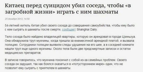 @galerist: Человек перед суицидом задушил соседа чтоб играть с ним в шахматы на том свете"Thanks. Twitter will use this to make your timeline better. UndoUndo