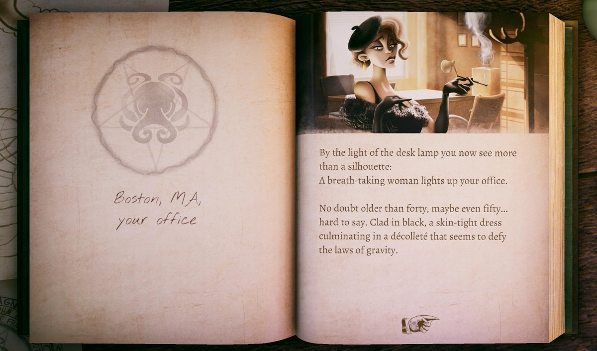 The Innsmouth Case by @robot_pumpkin is an interactive fiction with fantastic art and audio, set in a rather silly version of Lovecraft's seaside town. (And yeah, I get into *that*.)