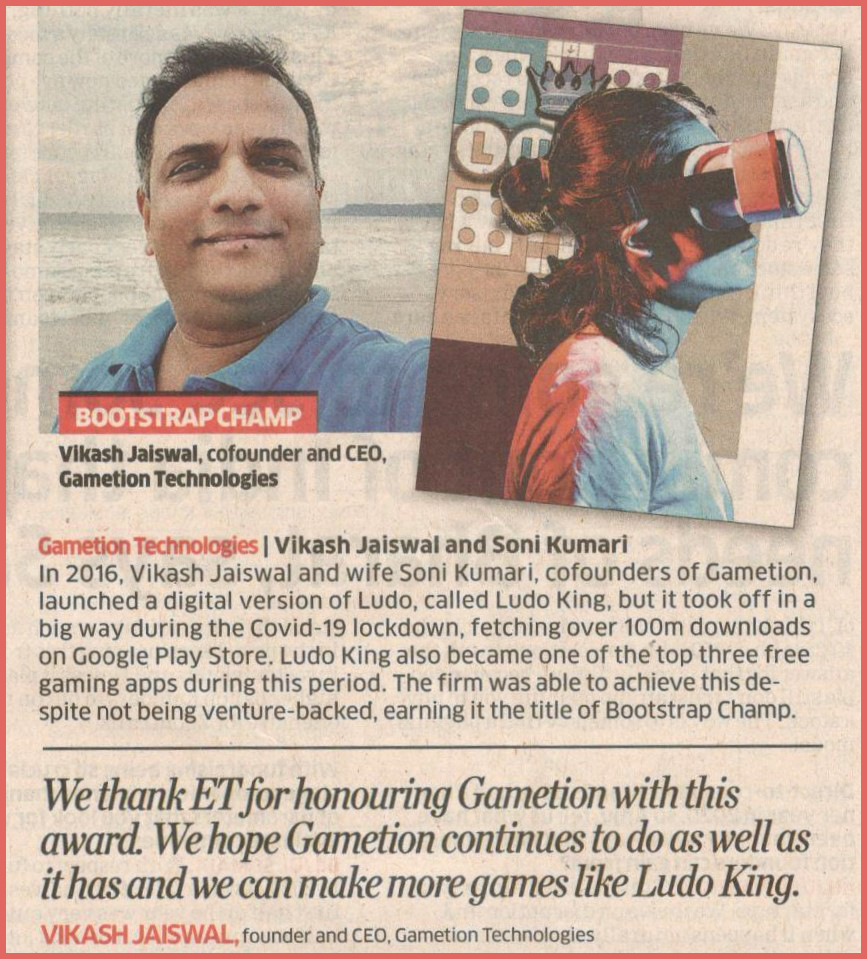 @EconomicTimes awards Gametion Technologies as the Bootstrap Champ of the Year 2020!