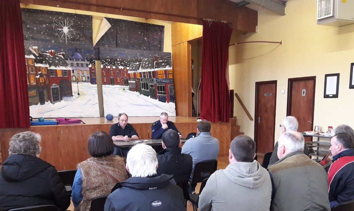 Community meeting organised by local Community Garda Donal O'Sullivan in Ballylanders. Mental health & Wellbeing issues covered as well Crime prevention advice & local issues. Pic: Barry Carey IFA. Sgt Ber Leetch, CPO Sgt Brendan Tighe & Supt John Ryanpic.twitter.com/MRKdB8bXna