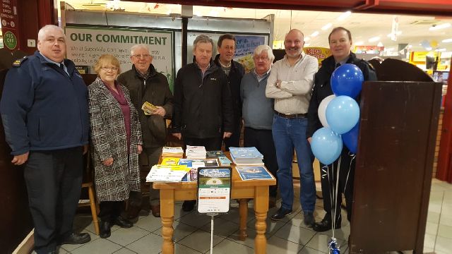 Gds Gerard Naughton, Josephine Flaherty, Paddy Cooke, Joseph Cooney, Francis Moylan, Paddy Joe Flaherty, Peter Minehan of Minehans Supervalu Gort, Sgt Pat Fitzmaurice in Gort today as part of National Community Engagement.