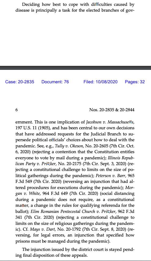 NEW: The 7th Circuit, 2-1, has blocked a district court order that would have extended Wisconsin's voter registration deadline and required the state to count ballots postmarked by Election Day through Nov. 9 https://assets.documentcloud.org/documents/7223388/10-8-20-Bostelmann-7th-Circuit.pdf …pic.twitter.com/VW3vEtSsrQ