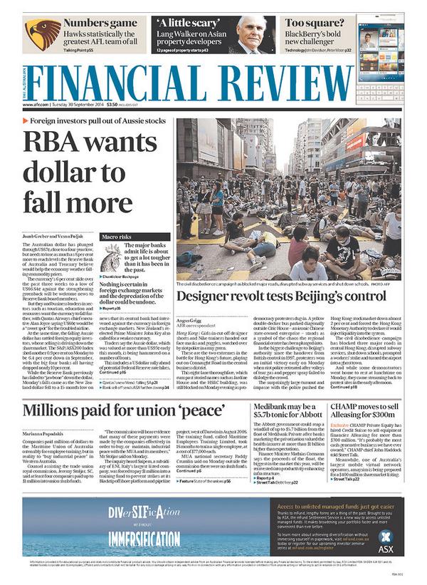 30 - Sept: Australia Financial Review #URHK #HK926pic.twitter.com/1qC8ko7OEK