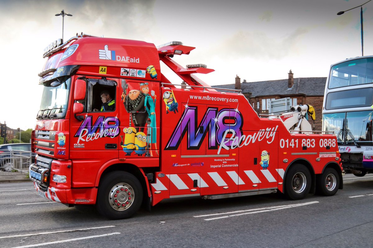 #bus breaks down on#DumbartonRoad#DespicableMe comes to the#rescue.@M8Recovery@DAFTrucksUK#RedTruck#Yoker#Glasgow#BigTruckpic.twitter.com/iMQpY0ujvP