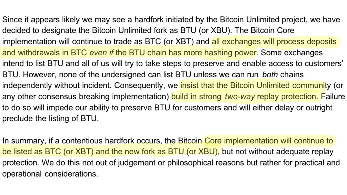 1/ Major Bitcoin exchanges announce hard fork contingency plan: BU to be listed as altcoin XBU/BTU, demand strong replay protection.pic.twitter.com/VsQuj0ZoAk