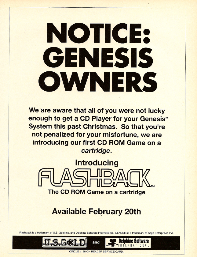 Ad for Flashback (Sega Genesis) (EGM #43)pic.twitter.com/S8YXPmE2p9