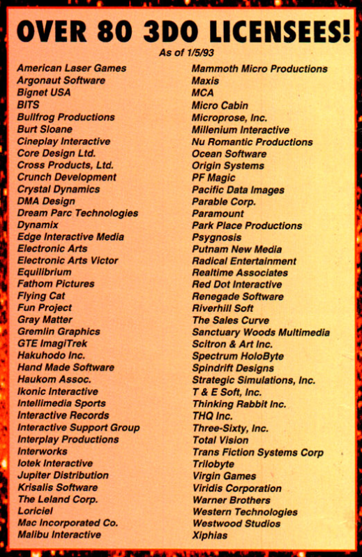 3DO licensees as of January 1993 (EGM's Video Game Preview Guide)pic.twitter.com/TTEVSoBEKf
