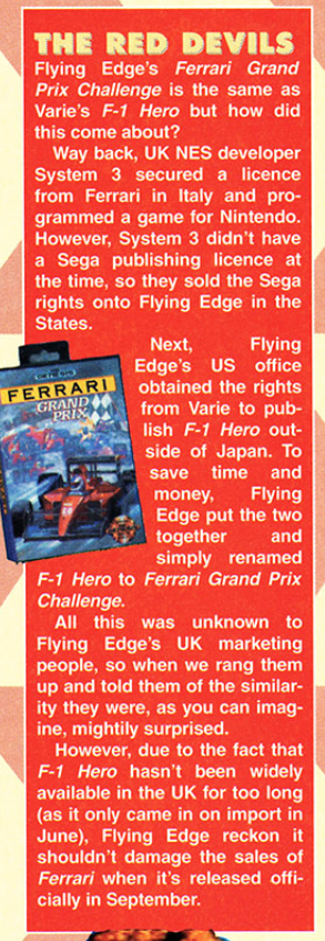 Flying Edge clueless again (F-1 Hero/Ferrari Grand Prix Challenge) (SegaPro UK 10 August 1992)pic.twitter.com/ItNe0ZkyqC