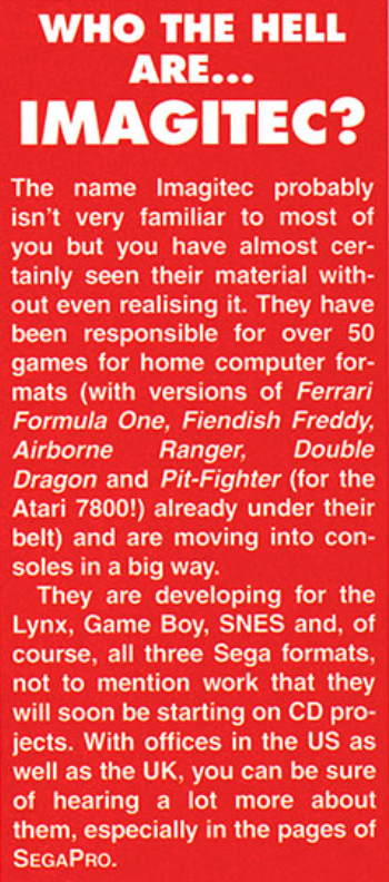 But who are Imagitec? (SegaPro UK 10 August 1992)pic.twitter.com/blfeAvJkTR