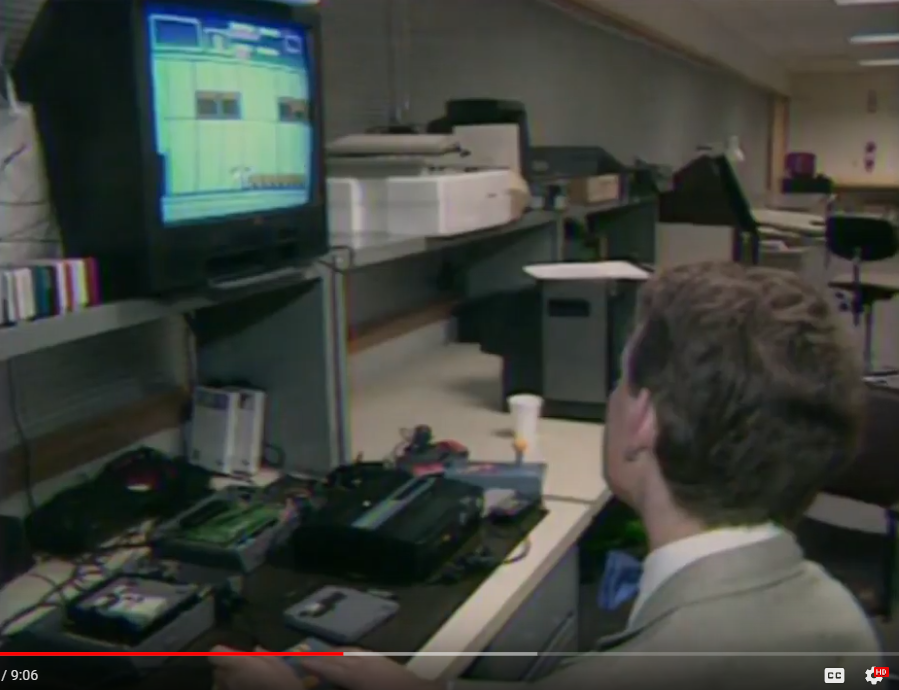 I can't name the game Howard Phillips is playing in the NoA R&D lab using the ASCII Stick Turbo Jr. Anyone know? I noticed a Sega Master System with the two game cases in back of the disassembled NES. I might be wrong but there may also be an Atari ST on the shelf next to the TV.pic.twitter.com/31MsTdSHBT