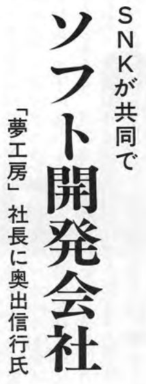 "SNK joint software development company, Nobuyuki Okude becomes president of Yumekobo" (Game Machine 1996/9/15, pg. 5)pic.twitter.com/KlN2PNFLZT
