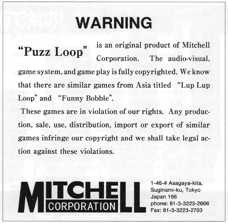 Mitchell's Puzz Loop: Beware of imitators (Game Machine 1999/2/1, p. 22)pic.twitter.com/fzCz2bdquA