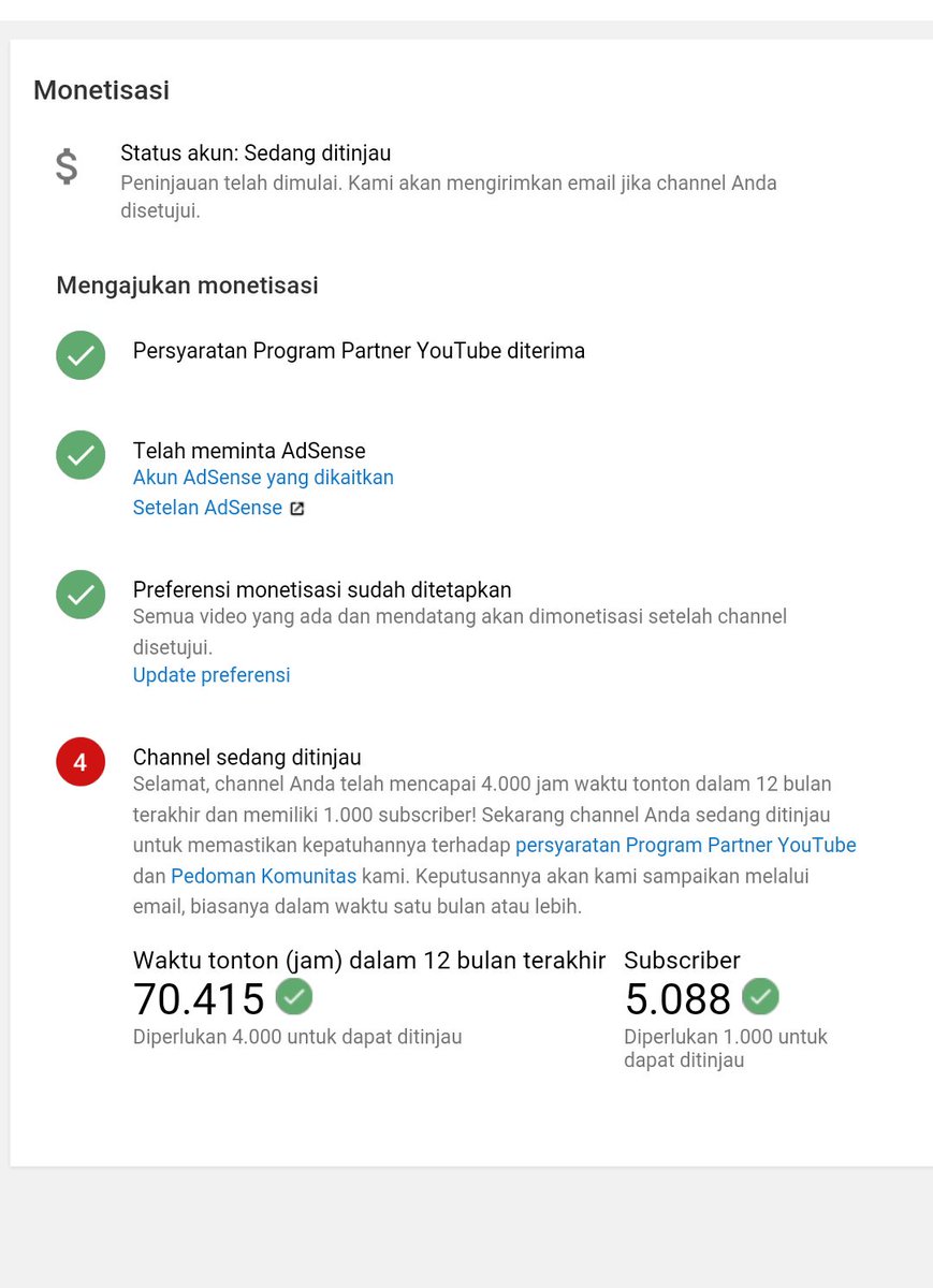 Siang Kak Muhtar. Selama channel kamu memenuhi persyaratan & ambang batas program, pasti akan di review. Tapi tdk ada jadwal spesifik utk lama prosesnya. Upload terus konten yg orisinil, jd semakin banyak konten yg di review oleh tim kami utk dpt hasil keputusan secepatnya 🙂.