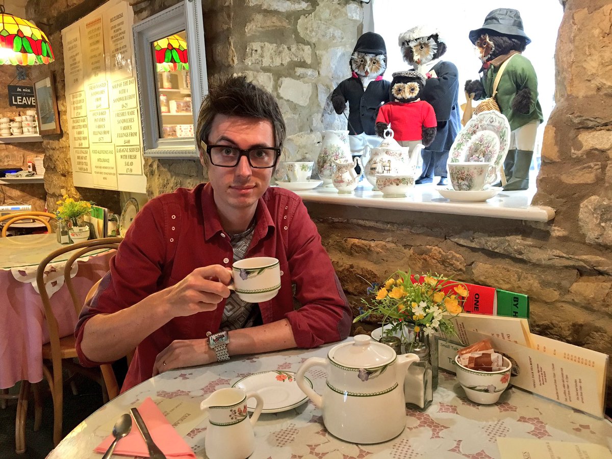 I went full on when it came to a cream tea in the Cotswolds. Peak English right here. Look at the terrifying owl people.pic.twitter.com/zpjxi4D6EQ