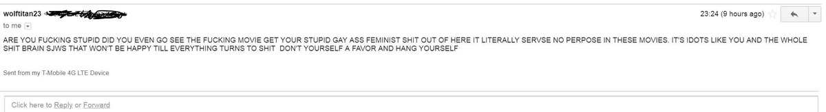 Ah, the joys of film reviewing. The thrill of the connection to the audience, and the pleasure in receiving correspondence into your unadvertised inbox.