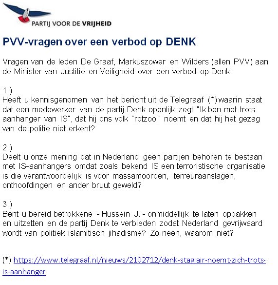 Nee want natuurlijk is de Pvv zo ''schoon'' qua medewerkers, Kamerleden en raadsleden. Dit is walgelijk, maar hypocriet dat het van de Pvv komt. Overigens ook erg dictatoriaal om politieke partijen die demcratisch gekozen zijn te verbieden.