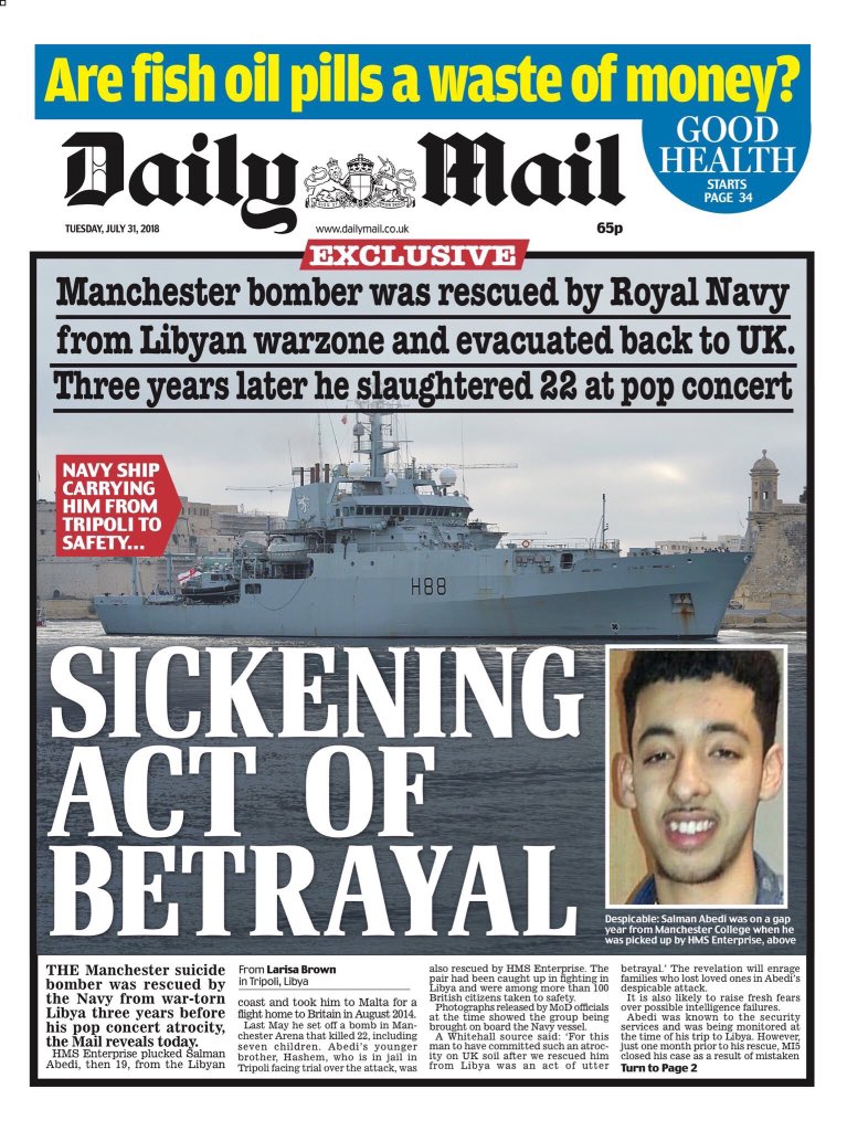 Mijn god, wat een manier om de Britten 'te bedanken' voor zijn redding. Nou, mijn mening? Nu direct voor een vuurpeleton deze Salman Abedi! Of is dit nu ook zo'n 'verwarde man'.......