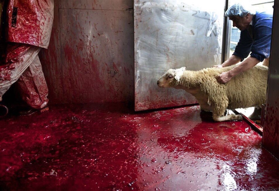 This a cruel and barbaric way of killing animals the stress these poor animals must go through some are kicked punch pulled by their legs because they can smell what’s going to happen there is no need to do it that way why can’t animals be stunned this is not our culture cruel
