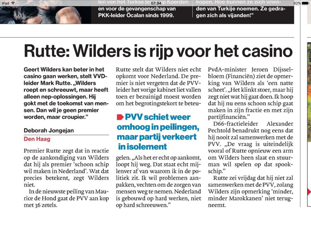 Bijn de Volkskrant (250.000 lezers) hebben ze ook een mening over iemand (2,5 miljoen kiezers)