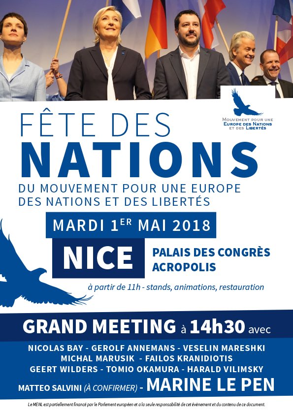 I will attend in Nice - May 1 - with @MLP_officiel and other friends and allies and give a speech. #FêteDesNations #1erMaipic.twitter.com/vHEV60asmd