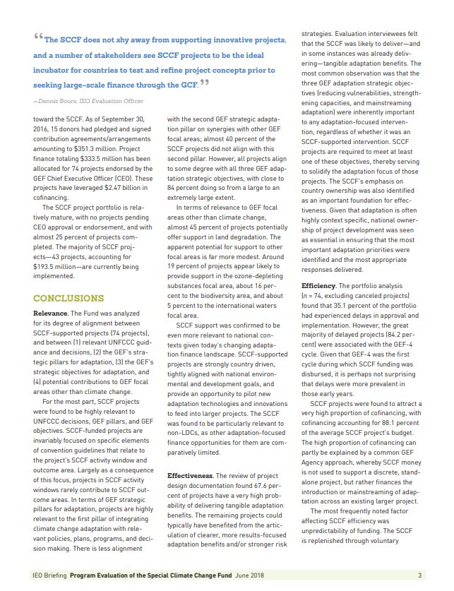 Helping developing countries to #innovate + #adapt has become a central thrust of the Special #Climate Change Fund. This #evaluation provides evidence on progress toward those objectives https://bit.ly/2sdBsuM #SCCFpic.twitter.com/nYCfYUL7Yx