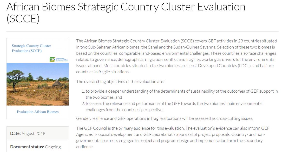 Approach papers for the Strategic Country Cluster #Evaluation (SCCE): Least Developed Countries (#LDC) https://bit.ly/2xGcc0w | Small Island Developing States (#SIDS) http://bit.ly/2zCW4yo | African Biomes in the #Sahel and #Sudan-#Guinea Savanna https://bit.ly/2IpXFtS pic.twitter.com/NOgWgjk1nH
