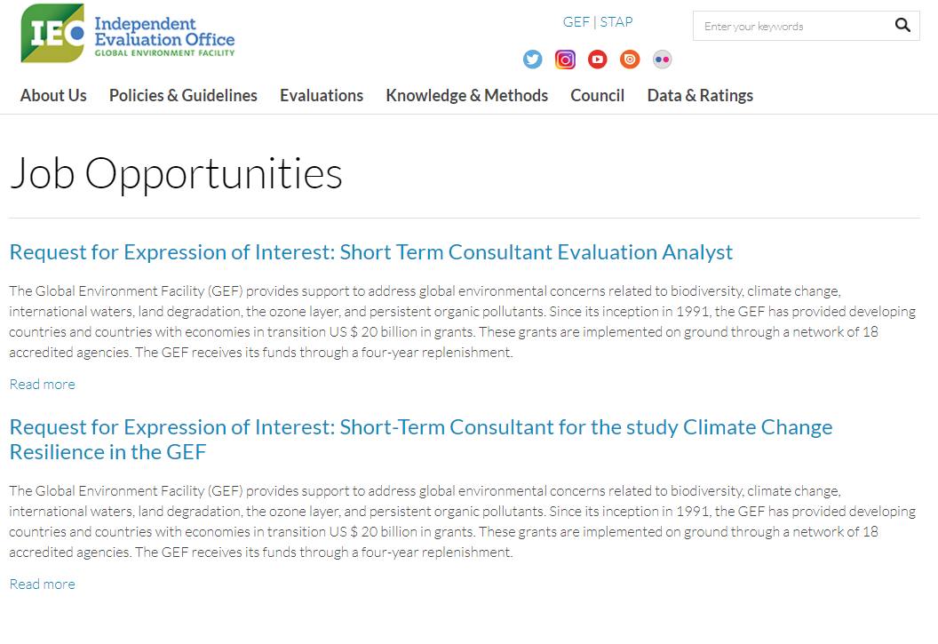 The Independent #Evaluation Office of the #GEF is seeking to hire consultants for two positions.