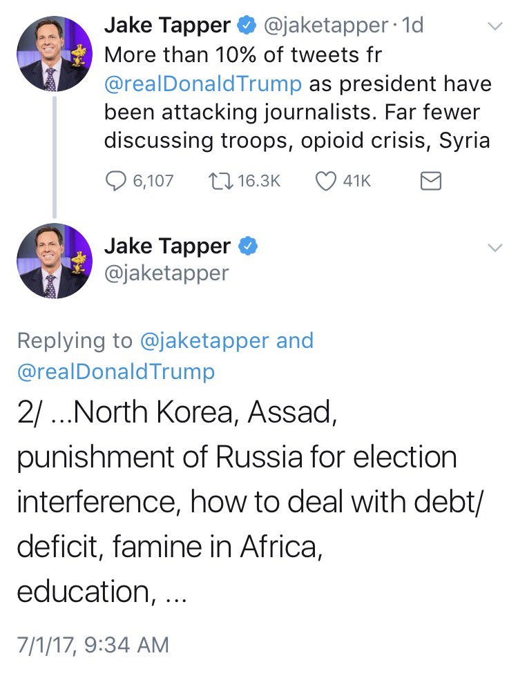@jaketapper spending even 10% of his time talking about REAL news and real crisis.#fakenewshttps://twitter.com/MaxBlumenthal/status/881697908222984194 …