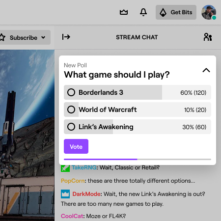 ➡️ENCUESTAS Partners y Afiliados podrán lanzar encuestas a su comunidad totalmente integradas en el chat. Los resultados se podrán ver en tiempo real y parece que tendrá la opción de dar más peso al voto de los subs. Fechas: Octubre 2019 Más info: https://twitter.com/Twitch/status/1178421865884336130 … pic.twitter.com/87O2iSrmks