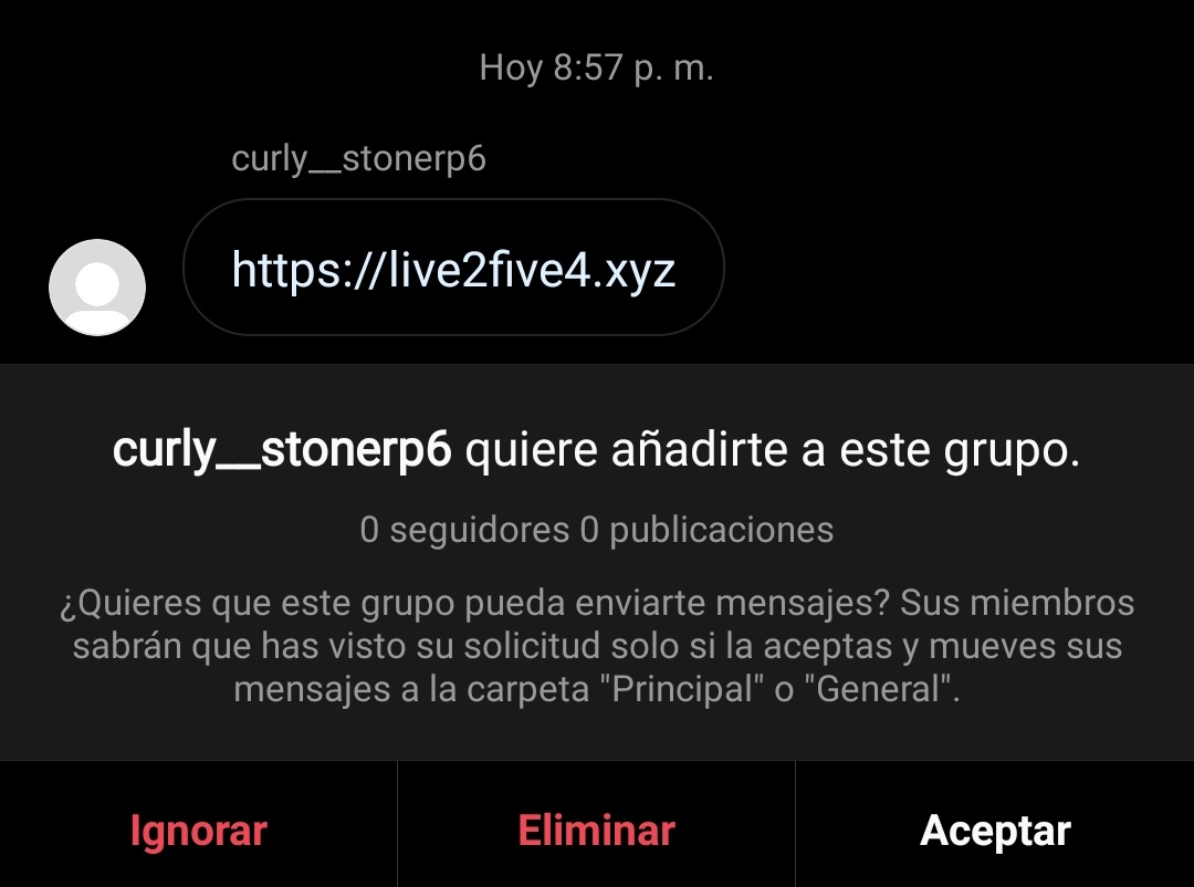 Uno empieza a cansarse de que cada 10min me lleguen estos mensajes por @instagram, intentando añadirme a grupos de mensajes pars difundir spam. ¿Le pasa a alguien más?pic.twitter.com/8vx7T6JVhQ