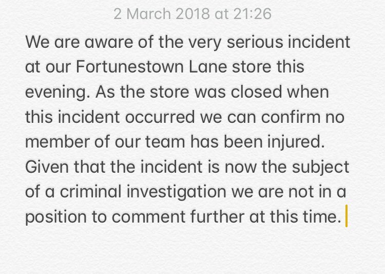 Please see below statement in relation to the incident at our branch at Fortunestown Lane, Dublin pic.twitter.com/jl8PD57Vcx