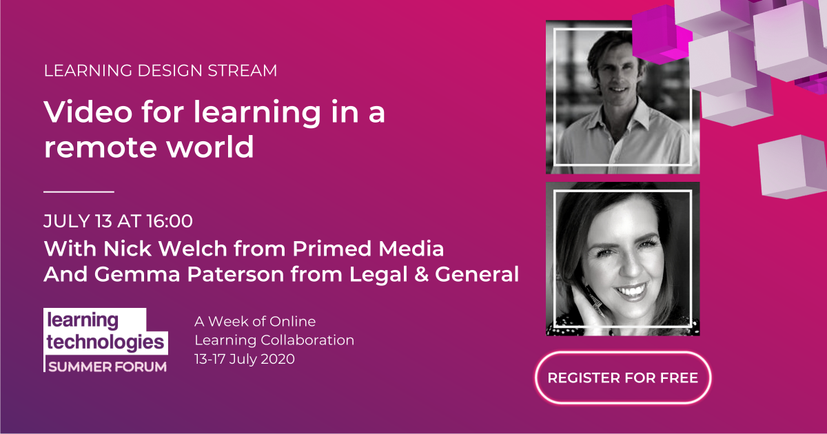 #LTSF20: Video for learning in a remote world with Nick Welch, Primed Media &@GemStGem, Legal & General - starts in 1 hour This session is now fully booked, but you can still register for free to get access to the recording afterwards