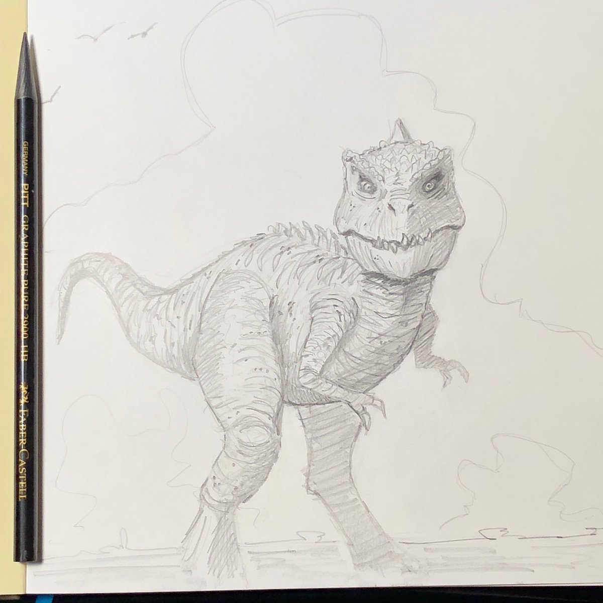 Dino sketch I did a week or so back. Learning and having fun. Just discovered woodless pencils, all graphite!pic.twitter.com/no6zLP6HR5