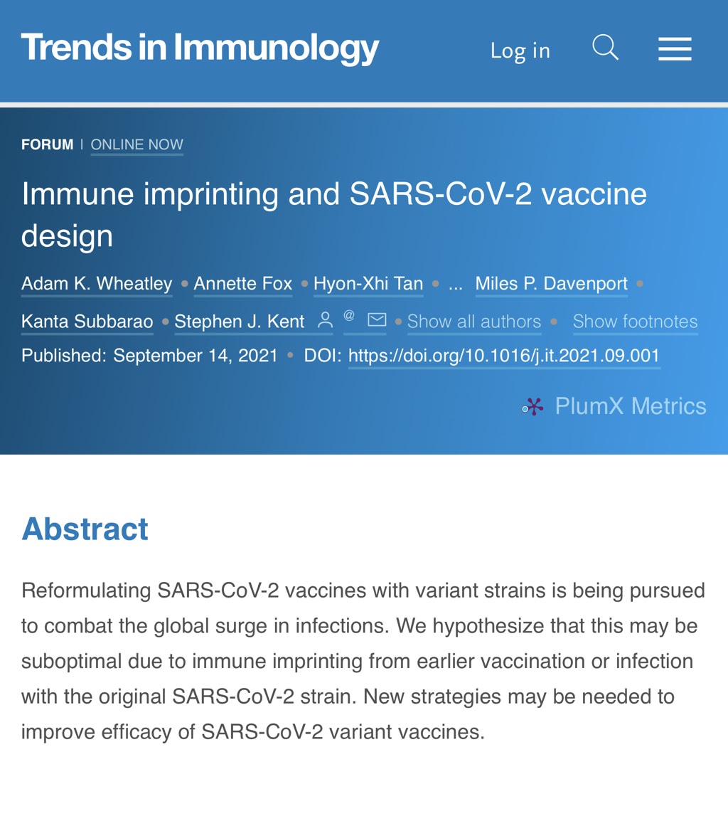 Not mentioned in the abstract, but the immune imprinting they talk about is obviously original antigenic sin. The more ‘suboptimal’ (i.e. outdated antigen) jabs one gets the more challenging the identification of efficacy improving strategies becomes. https://www.cell.com/trends/immunology/abstract/S1471-4906(21)00177-0 …pic.twitter.com/XVP7KIJNqr