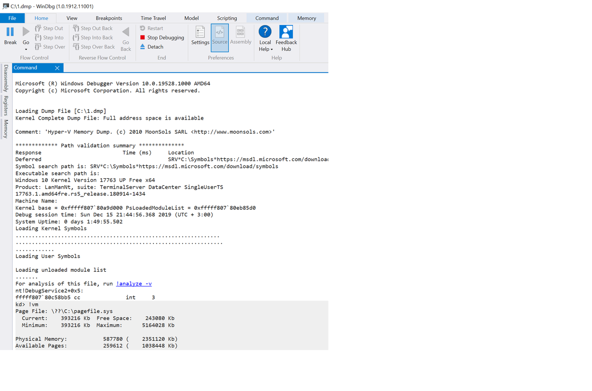 WinDBG 10 and WinDBG Preview, when parsing DMP file, get context region offset using KPRCB.Context field instead of DUMP_HEADER64.ContextRecord. KPRCB.Context offsets can be found in DEBUGGER_DATA_BLOCK.OffsetPrcbContext. No need additional fix in LiveCloudKd for dmp format more.pic.twitter.com/6tuYjFtrmS