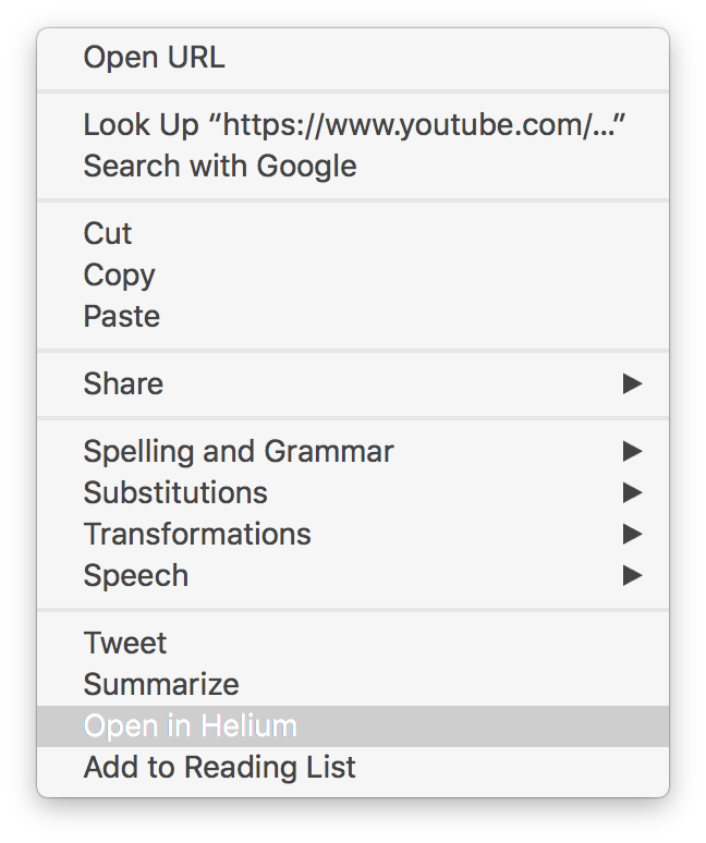 Finally, Helium has a OS X share extension! Click "Open in Helium" and start watching right away!