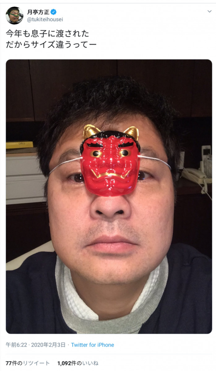 「こんな鬼来たら逆にお家に入れちゃいますね」 鬼のお面をつけた月亭方正さんの姿が話題に https://getnews.jp/archives/2385656 …