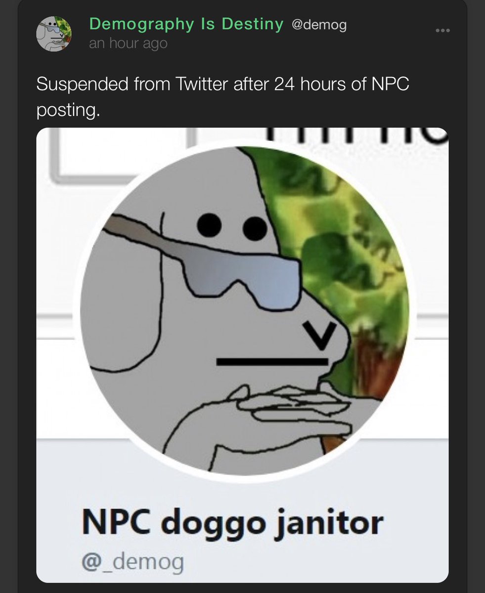 Multiple reports coming in of NPC Twitter bans. NPC lives matter!pic.twitter.com/QHLNI1cnLs