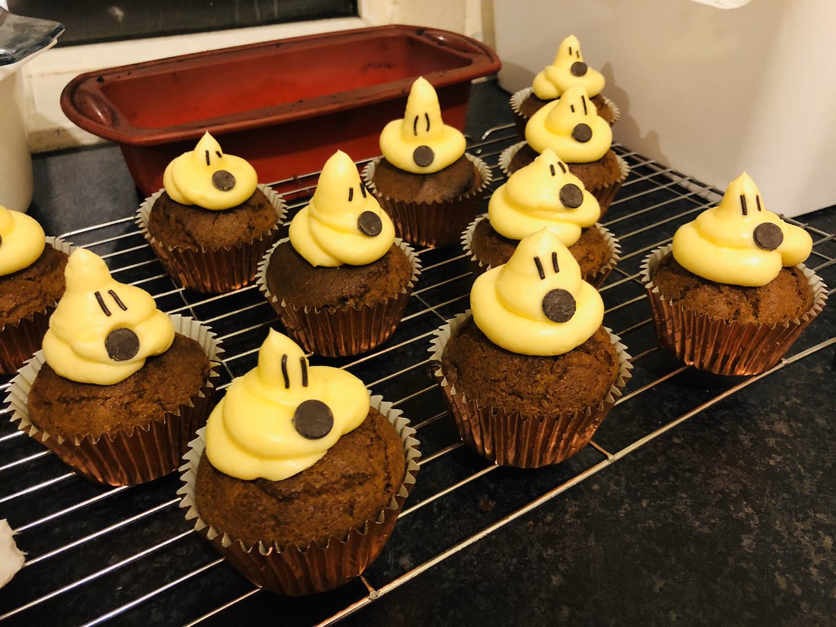 Fiancée made some hella cute spiced pumpkin cupcakes with honey whiskey icing for my birthday today. They’re soooo good too