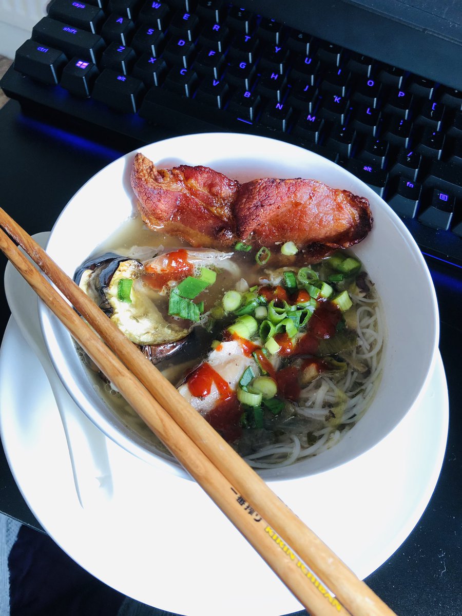 Leftover bacon from breakfast, leftover homemade phó from yesterday... bacon chicken phó for lunch it is! #sumofromhomepic.twitter.com/Y1KIiVm3jm