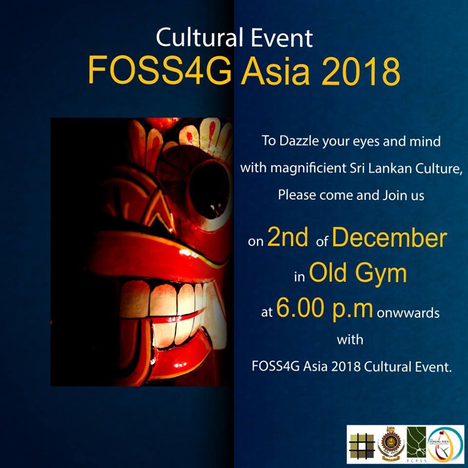 To Dazzle your eyes and mind with magnificent Sri Lankan Culture, Please come and Join us on 2nd of December at Old Gym at 6.00 p.m on wards with FOSS4G Asia 2018 Cultural Event.