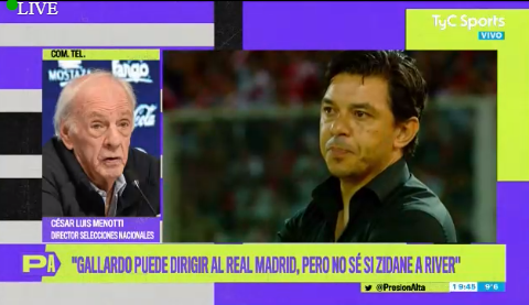 Sobre las capacidades del técnico millonario: "#Gallardo puede dirigir al Real Madrid, pero no sé si Zidane a#River" Y agregó: "#Gallardo reinventó a#River"pic.twitter.com/oj2G3aN77d