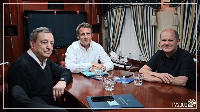 #Ucraina | A@siamonoitv2000 aggiornamenti e focus su Mario Draghi, Emmanuel Macron e il cancelliere tedesco Olaf Scholz a#Kiev dal presidente ucraino Volodymyr#Zelensky. Una missione storica per far sentire la vicinanza dell’Europa. Con@ggramaglia.https://www.tv2000.it/siamonoi/video/ucraina-italia-francia-e-germania-vanno-a-kiev/ …Thanks. Twitter will use this to make your timeline better. UndoUndo -